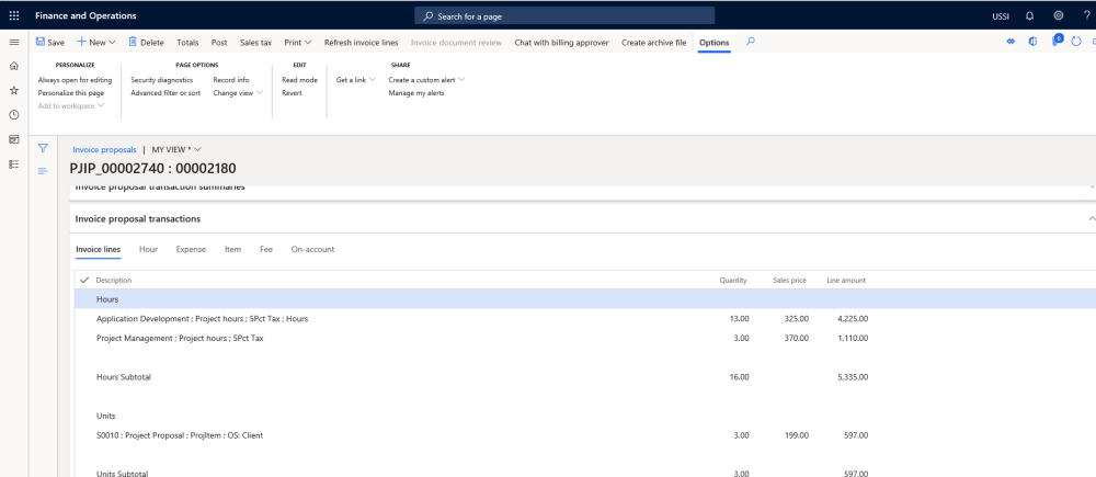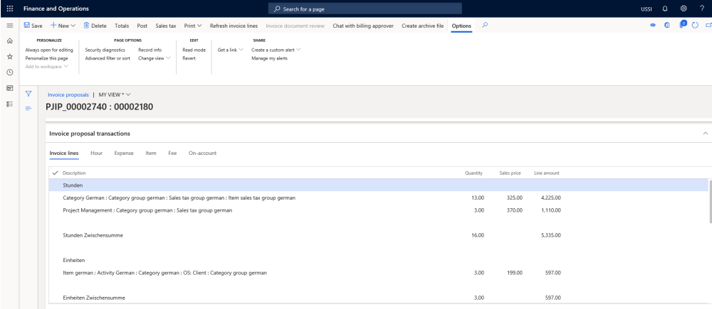 On project invoice proposal form, when the Customer language and current legal entity language is different the invoice grouping process will apply translations depending on the parameter and attribute configuration on the project invoicing group form.