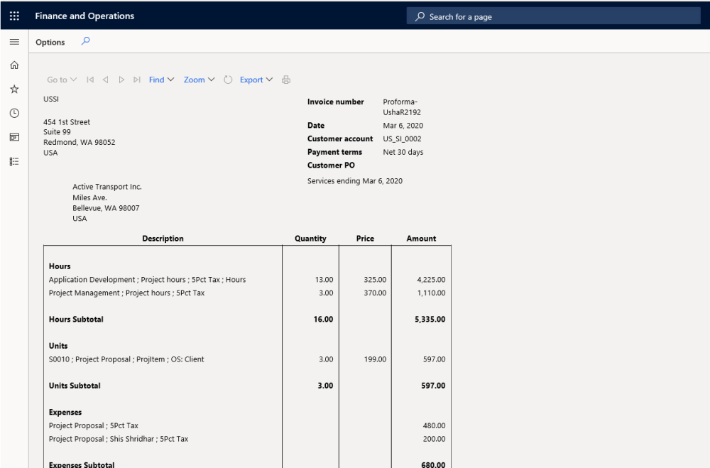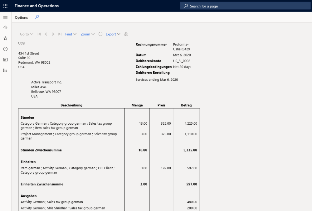 When the translation is being applied on the invoice proposal, when the company sends the invoice report to the customer, the report can be sent in the customer language based on the parameter and attribute configuration on the project invoicing group form.