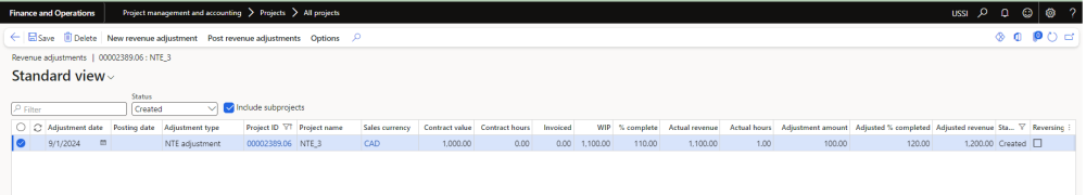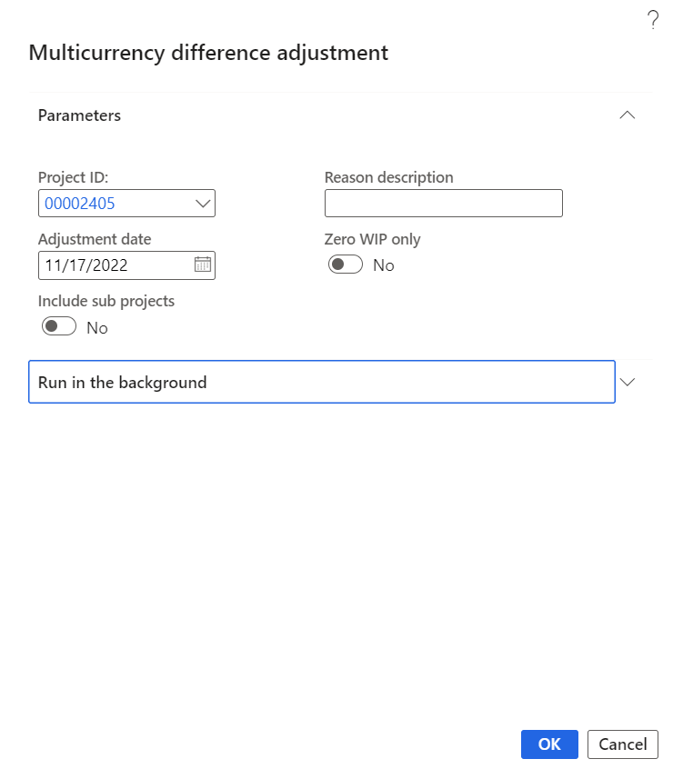 Revenue adjustments capabilities has been extended to cater for multicurrency scenarios. There could be scenarios where WIP is in sales currency on Fee management, but WIP is in accounting currency on project statement form then due to change in currency exchange rate, the multicurrency difference occurs. In this case you can use the multicurrency difference adjustment.