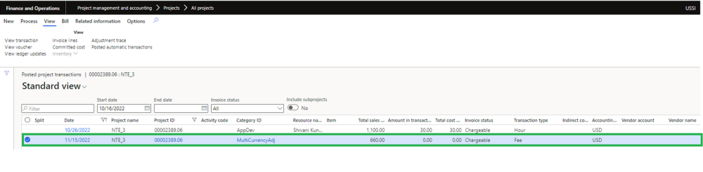 Go to Project management and accounting > All Projects > Fee management -> Multicurrency difference adjustment