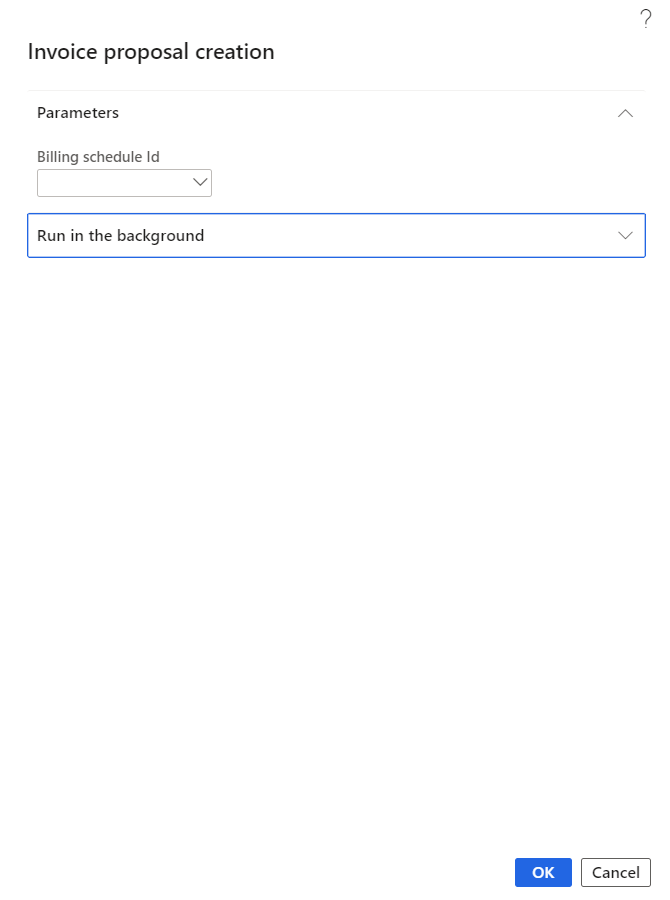 Invoice proposal creation periodic process helps in creating project invoice proposals for a selected billing schedule ID or for all billing schedules where the status is pre-billing complete. The process can be executed in batch as well.