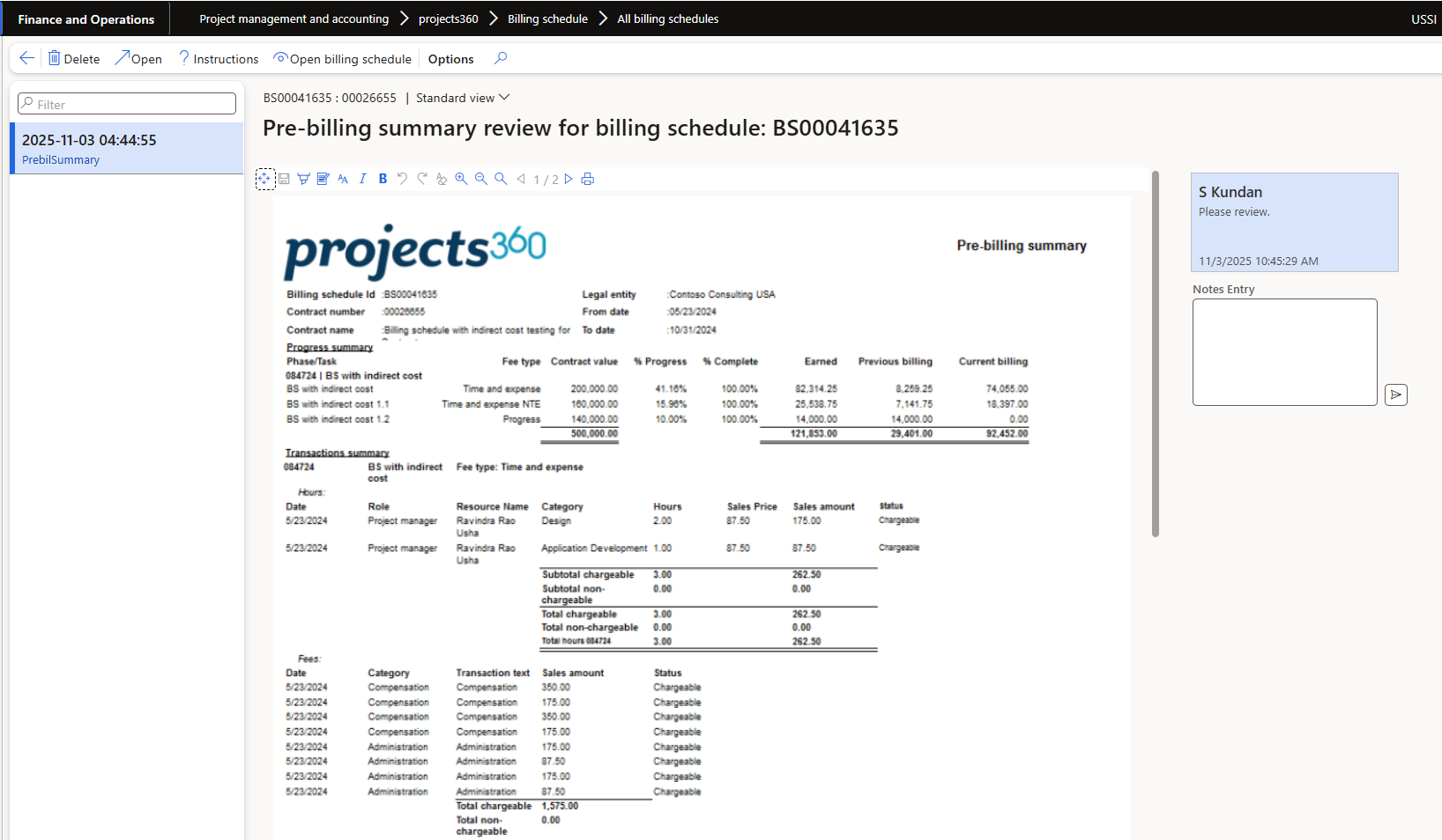 On the right-hand side of the pre-billing summary review document ‘comments’ functionality is added for the users to put in their thoughts and if any clarifications required. Comments can be added on each attachment and history of it will be maintained.