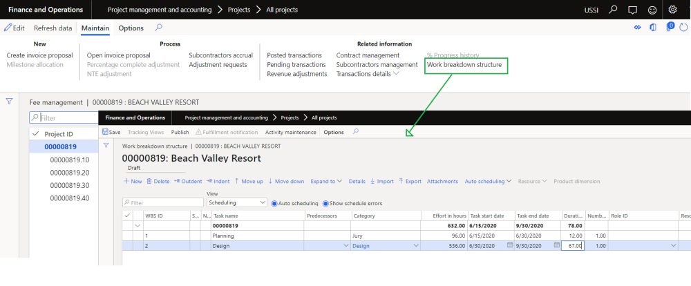 Work breakdown structure has been added on fee management allowing us to facilitate the setting up WBS information while setting up the budgets and contract information.