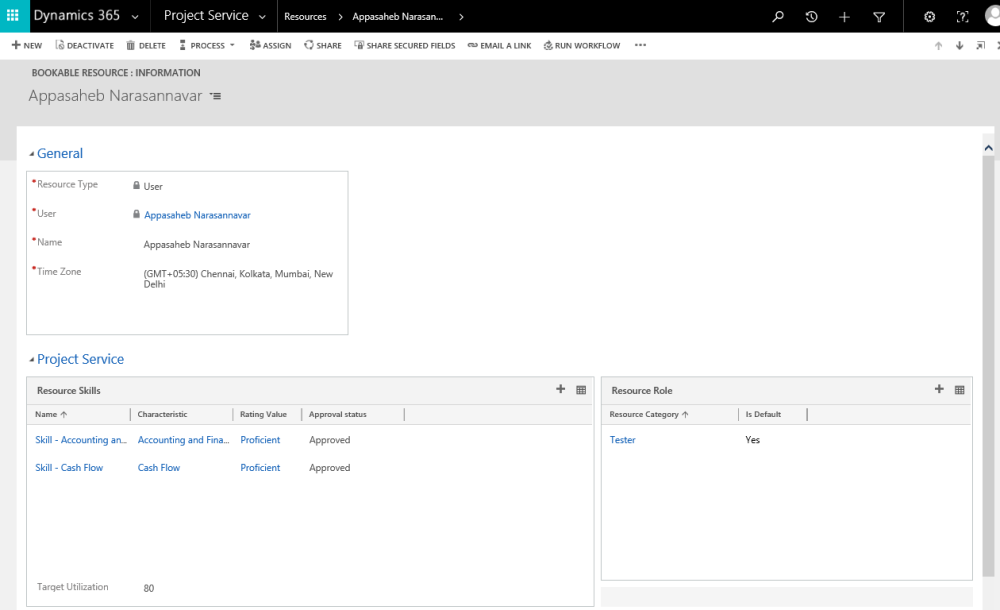 The resources data integrated to Microsoft Dynamics 365 for Finance and Operations can be compared with Project Service Automation application (PSA) on the below form.