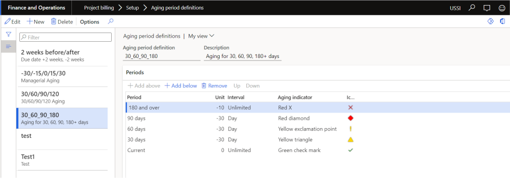 Go to Project billing > Setup > Aging period definitions