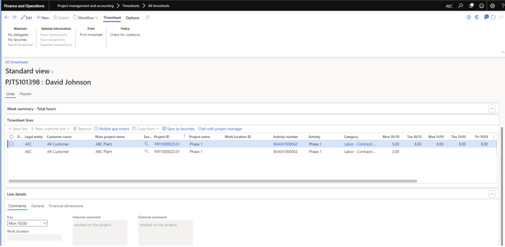 Once timesheet is submitted, user will be able to view the timesheet also submitted in F&O.