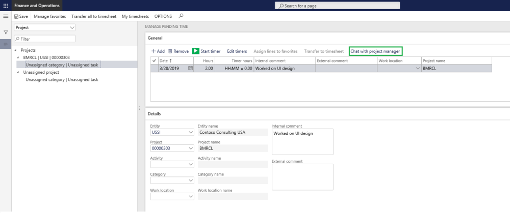Project manager can chat with the timesheet Resource. |