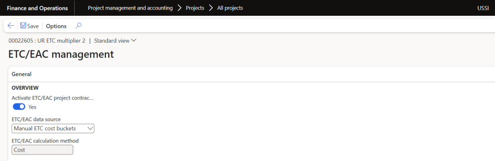 On Contract management – ETC/EAC settings id defined as “Manual ETC cost buckets”
