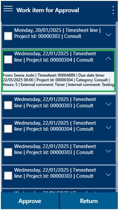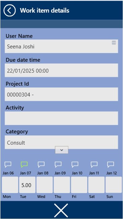 Note: This new ‘Work item details’ form will be available only when the ‘Document type’ is “Timesheet line”.