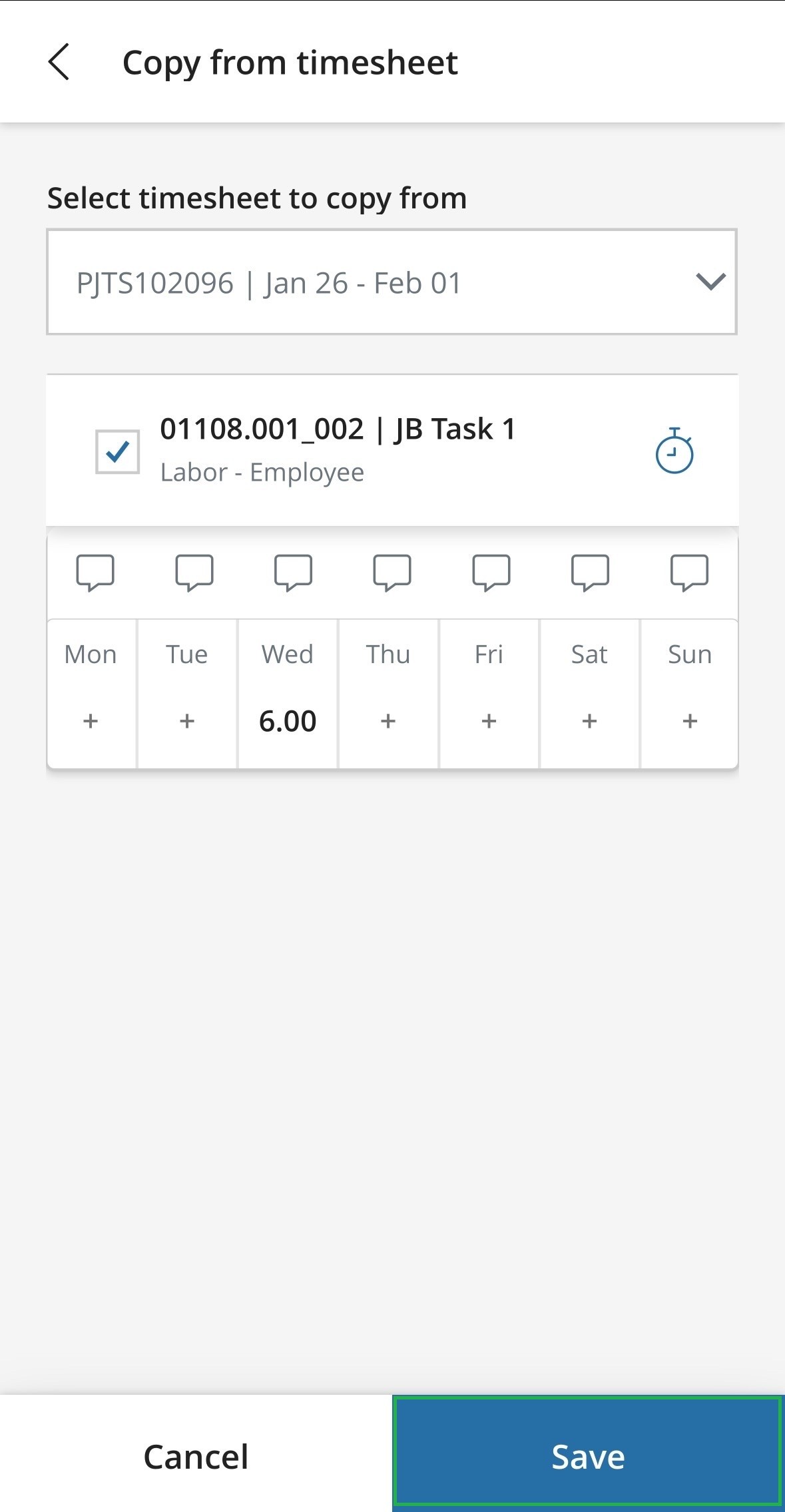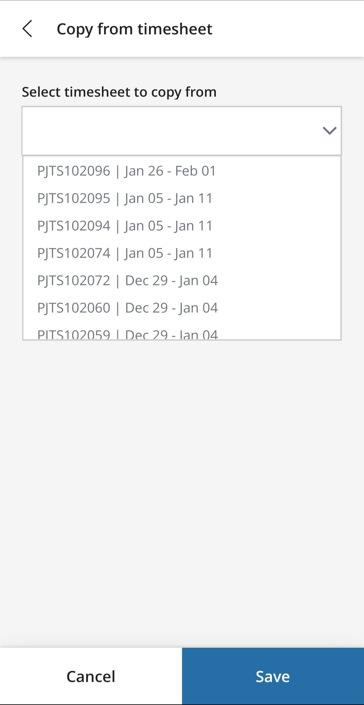 Following this, users can pick the exact timesheet they want to copy from the options shown under the timesheet header.
