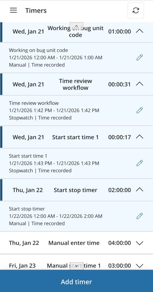 This section explains how timers can be generated automatically or manually within the timesheet mobile app once the necessary setup is enabled. Once the setup, as explained in the “configure” section, is complete, the timer field will become visible, allowing users to initiate and manage timers effortlessly.