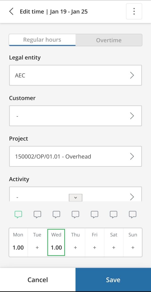 - Once the timer is linked to the timesheet, the hours for that particular date, belonging to the timesheet header and for which the timer is created, will either be incremented or decremented.