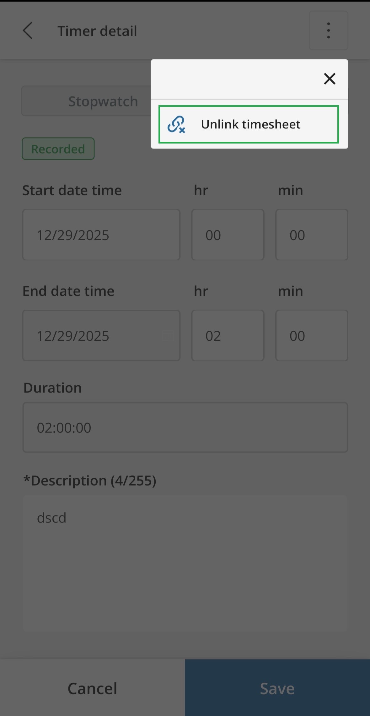 Once the timers are linked with timesheets, users also have the flexibility to unlink the timers from the timesheet by selecting the “Unlink timesheet” menu item.