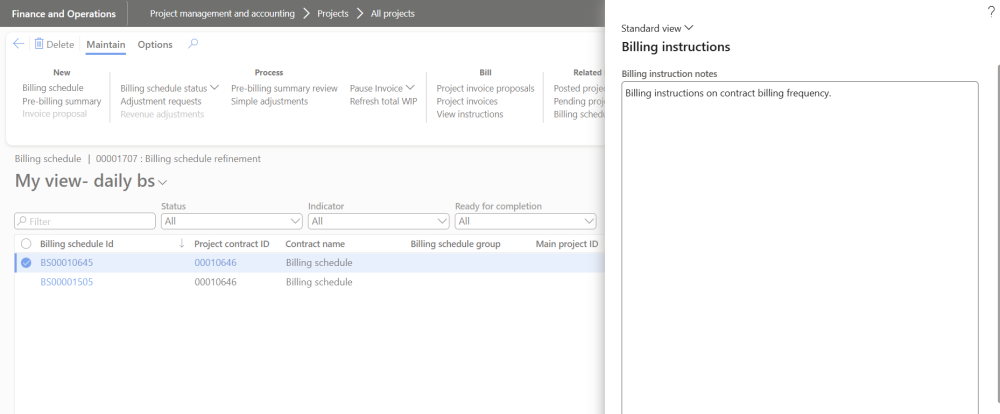 - Users must define parameters to enable editing of billing instructions on the Billing Schedule and Invoice Proposal.
