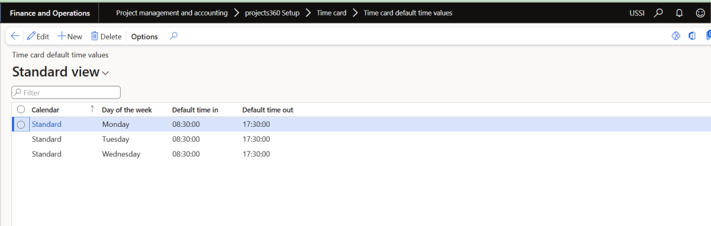 Time card functionality has been enhanced to provide more flexible and consistent defaulting behavior. Default Time In and Time Out values can now be configured at the calendar level by day of the week, ensuring that time cards reflect each resource’s working schedule more accurately.