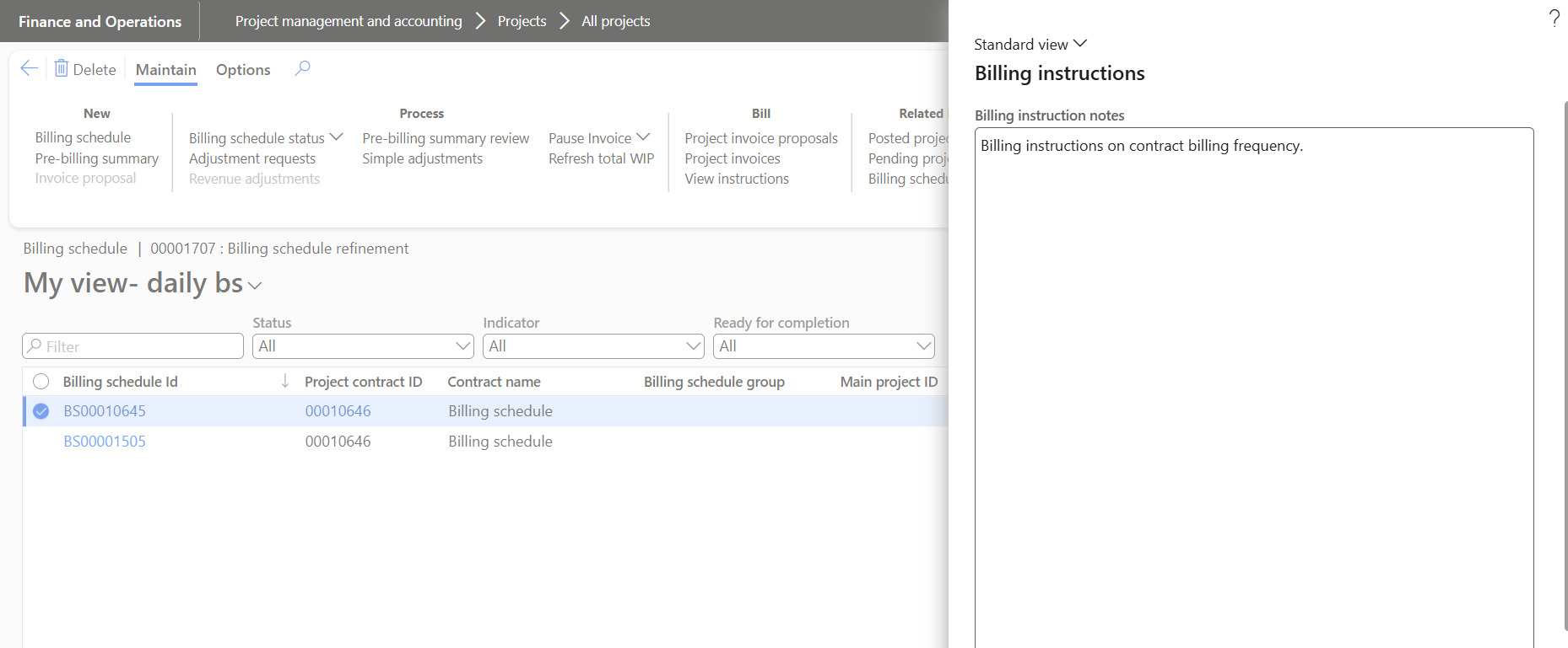 Billing instructions notes editable from Billing schedule and Invoice proposal forms