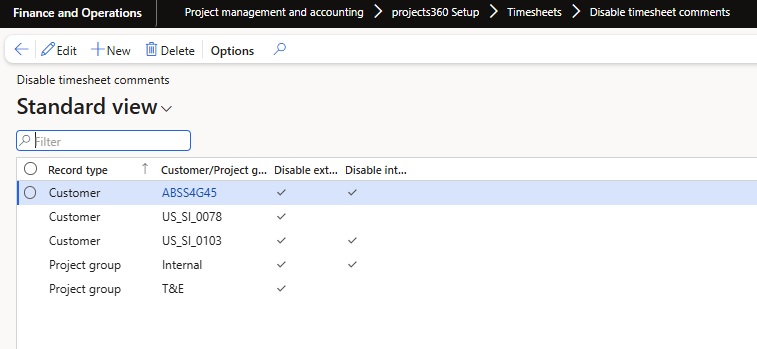 - A dedicated form “Disable Timesheet Comments” has been added to manage external/internal timesheet comment validations at Customer and Project Group levels.