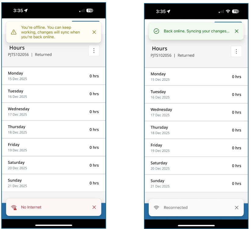 Additionally, we’ve improved the network connectivity status notification within the Time Entry Power App, ensuring users receive clearer and more reliable alerts about connectivity issues.