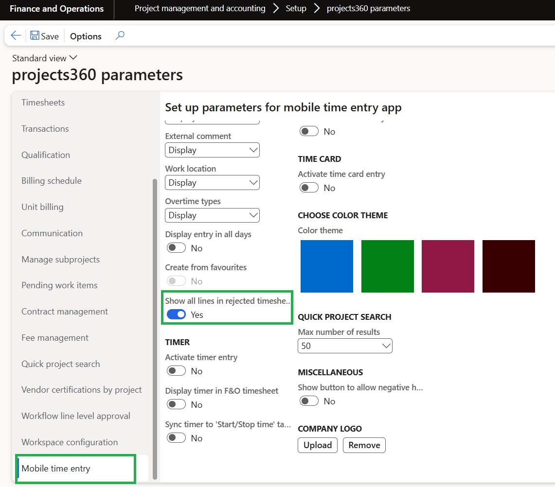 We’ve introduced a new parameter, “Show all lines in rejected timesheet,” in the Projects360 Parameters form. When enabled, this parameter allows users to view all lines in rejected timesheets without applying any filters.