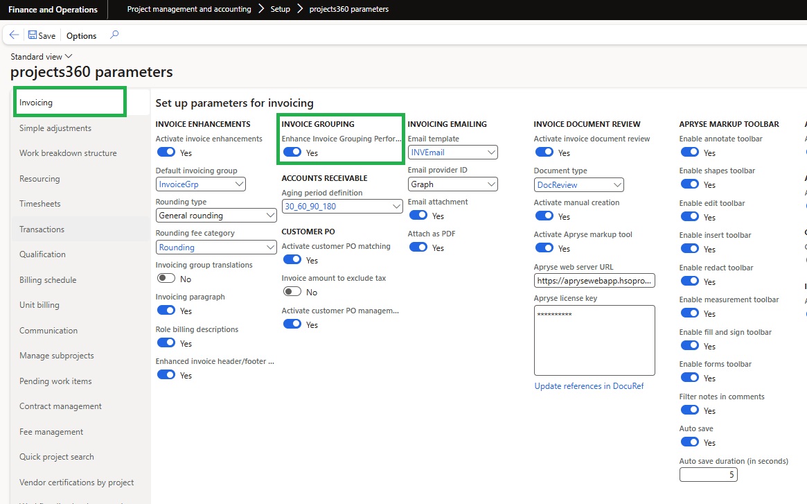 A new parameter named “Enhance Invoice Grouping Performance” is introduced under a newly created parameter group called “Invoice Grouping.” When this parameter is enabled, the system will skip calling the standard insert and update methods on the custom intermediate tables used for invoice grouping.